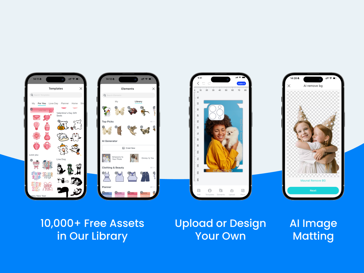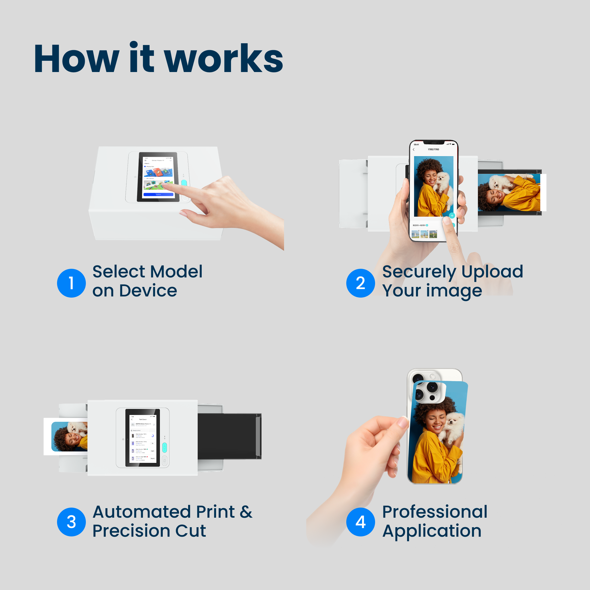 Select your phone model and design a personalized back skin, or upload your own artwork. Print and cut with ease, then peel and apply directly to your phone or case.