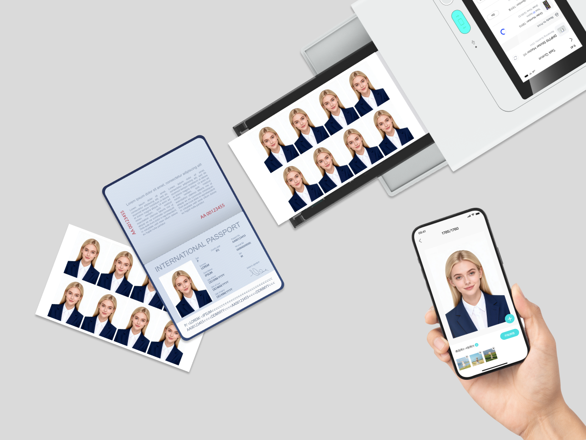 Print, Peel, and Stick! Easily print and cut passport and ID photos for various countries and sizes.